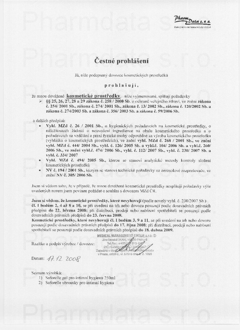 - SAFORELLE gel pro intimní hygienu 100ml144,3 Kč
